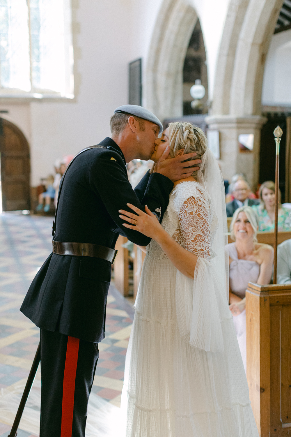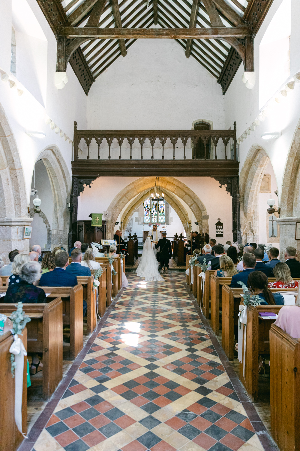 Set in a charming village church surrounded by rolling countryside, their ceremony felt both intimate and grand. Friends and family gathered beneath the stone arches as sunlight poured through the church windows, creating the most beautiful atmosphere for their vows.