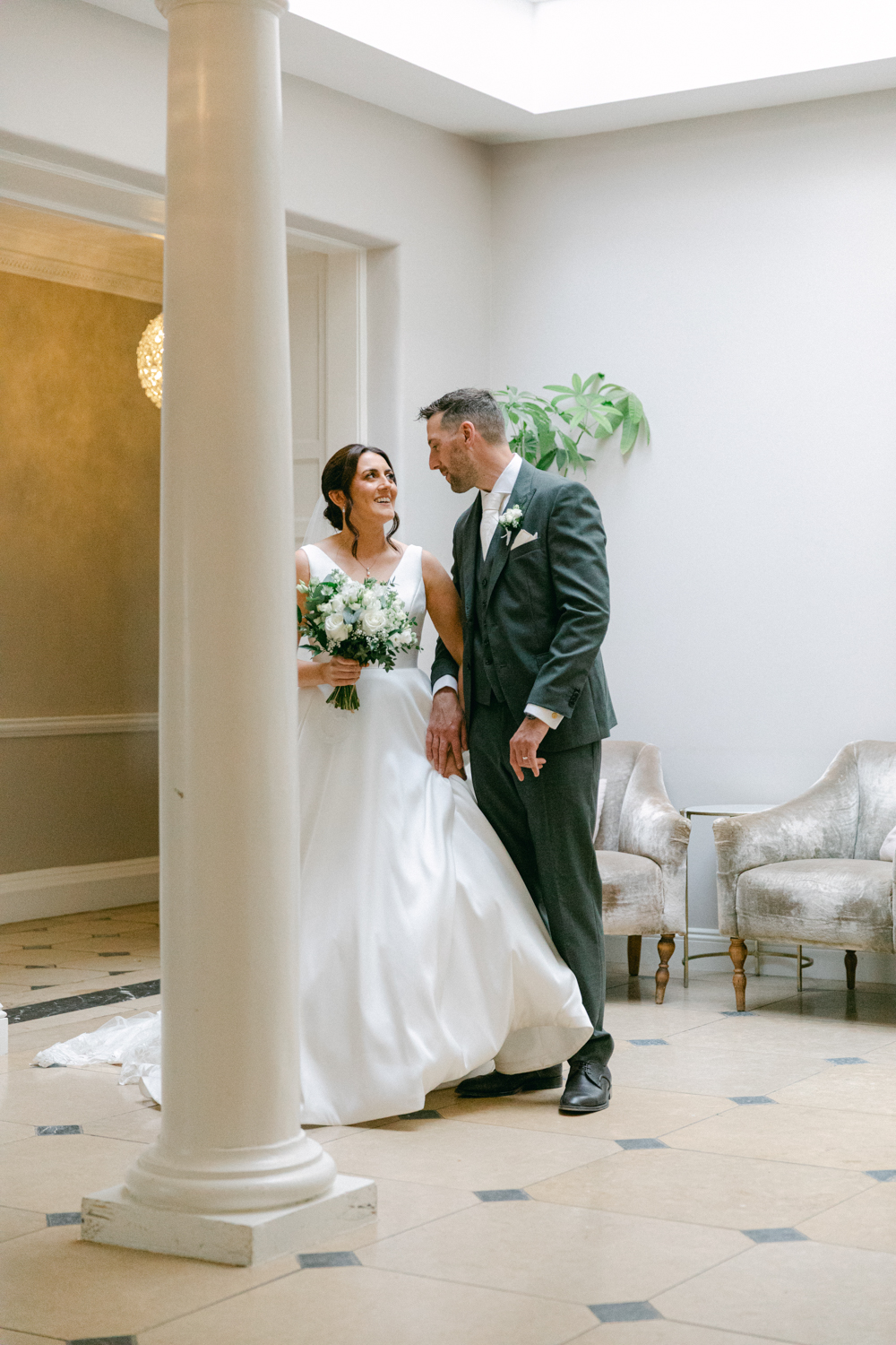 Sarah looked stunning in her elegant gown which perfectly suited the classic surroundings of the manor house. Meanwhile Alex arrived a little later and spent some time getting ready with his groomsmen in the Snooker Room.