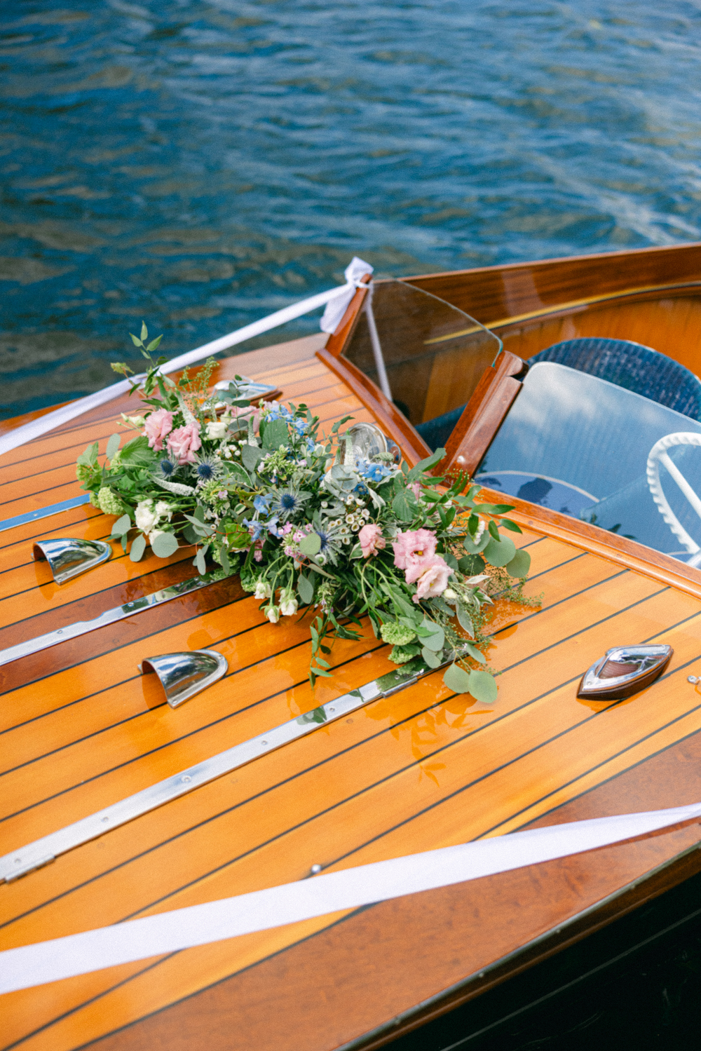 Sophie and Hugh later travelled separately by boat to the reception, creating a few peaceful moments together and some beautifully romantic portraits on the water.